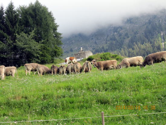 | 懐かしのCOOPマーケット。昼食はカレー味チキンサンドイッチ、ヨーグルト、マンゴーです。簡単に1400円になりますが、これがスイスです。 | ルガノ北方のモンテツェネリ峠標高は560mほどで楽勝。 |