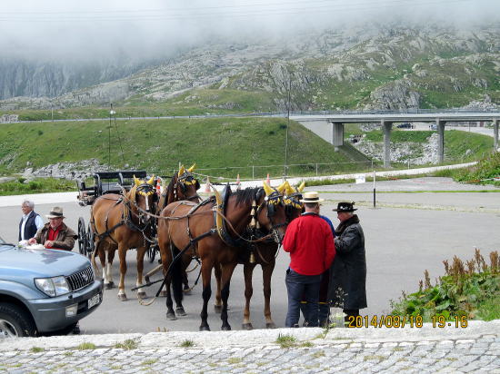 | ホテル、レストランが見えてきました。 | 峠では馬車による観光もあります。 |