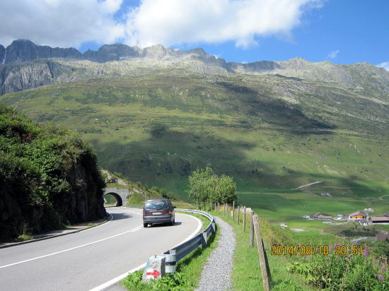 | バイエルン公国の聖人ゴッタルドからの名前由来。1775年に馬車が通れる道路が建設されるまで徒歩と駄獣のみが通行できる道であった。(ウィキペディアより) | トンネル後グシシェネン、ヴァッセンの町を通ります。ヴァッセンからは西にスステン峠を経てマイリンゲン(昨年通過)にいたります。 |