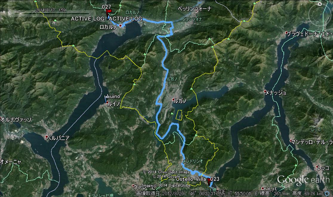 1日目:8月16日 イタリアコモYH(201m) 〜ルガノ271m 〜ロカルノ214m 〜Della Stadione(256m) (晴れ) 約90q