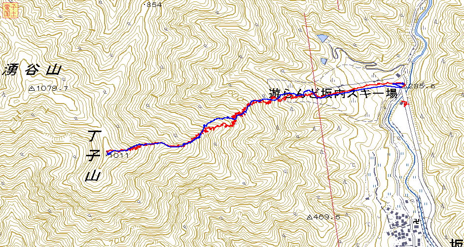 | 進むのにもアップダウンがあり厳しい尾根。 | ヤブの濃い急斜面を滑ります。 |