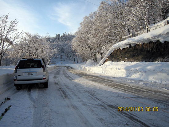 | きれいに除雪されありがたい。 出発8:00 | 新雪70㎝はある。 |