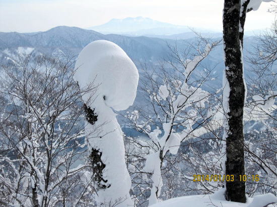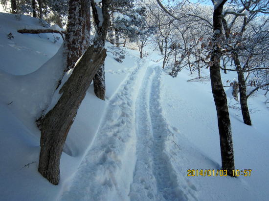 | 御岳が見える。 | 前日のラッセルに感謝。 |