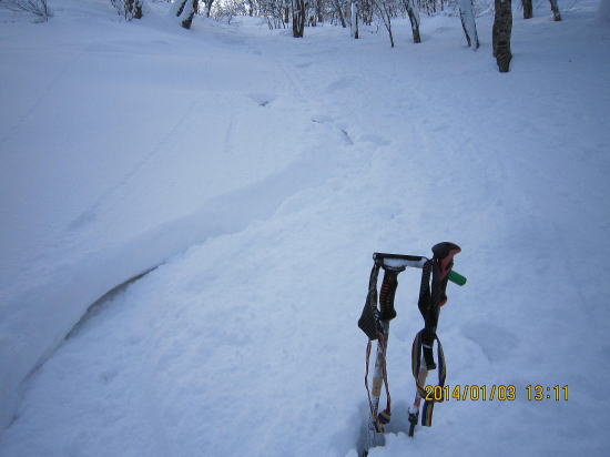 | 深雪滑降。 | パウダーではなく湿雪。 |