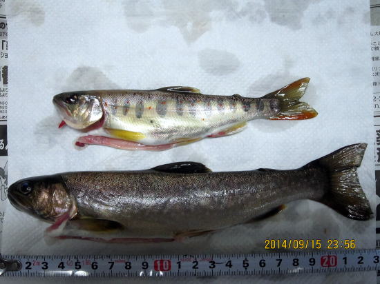 9月15日 17:15〜18:30 夕闇に 釣り期終了 哀しくて あまご(雨後)求めて 竿ふりつづけり。 一昨日良い思いをしたので中1日でトライした。減水が始まり水苔が川の石につき始めた。今日は難しいかなと思いつつ竿を出すと案の定、あたりはめっきり少なくなった。他ウグイが1匹であたりは10回あっただろうか。9月末まであと何回これようか。今年初めてのイワナ(下)でうれしかった。 |