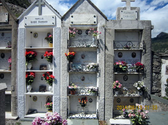 | 尖塔がある墓地から眺める町。 | お墓はシンプルなものもある。 |