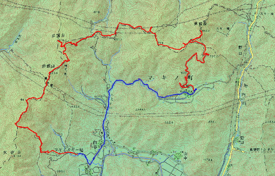 ※トラック帰路の青線ですが2400m地点で尾根に戻っていますがGPSの誤作動です。