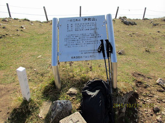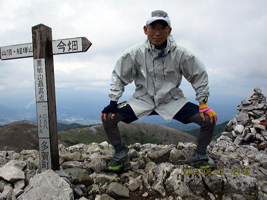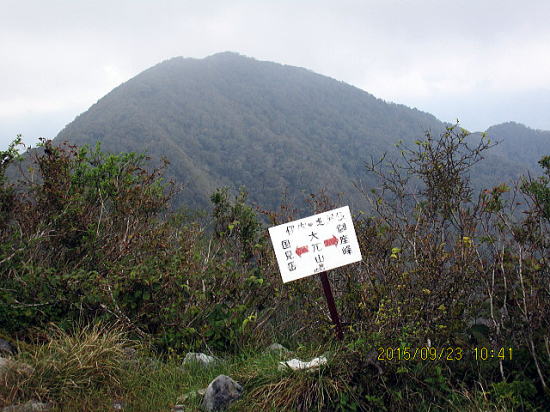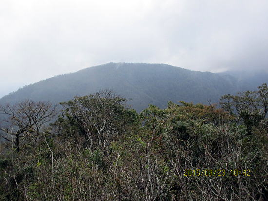 | 曇っていてガスがかかっているようで気になります。 | 40分で国見岳着きましたが、展望はガスのため無し。20分ほど待ちます。 |