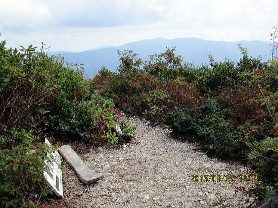 | 御座峰への稜線は展望よく気持ちがよい。 | 御座峰は展望はまったく望めません、がくっ。 |