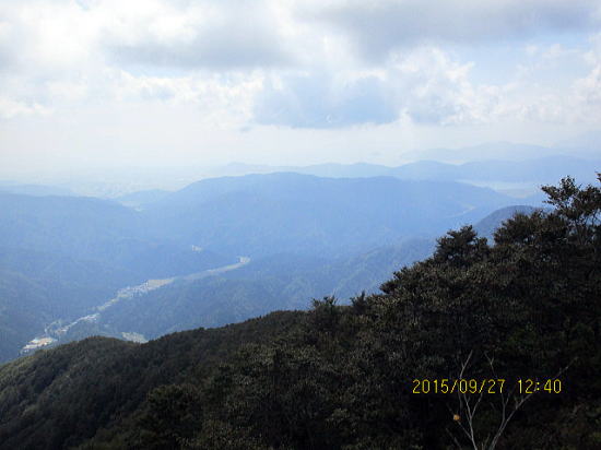 | 霧がとれてきたので南方面の大禿山へ向かう。 | 尾根道から東方面旧春日村三束を望む。 |