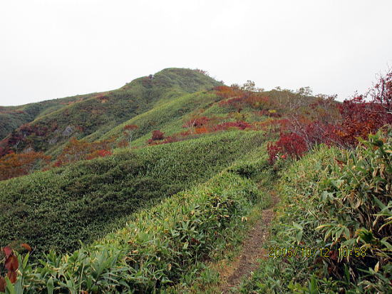 | 晴れたらこの稜線は奥美濃絶景稜線の一つにのはいるでしょう。 | 手前ピークから本峰に向かいます。 |