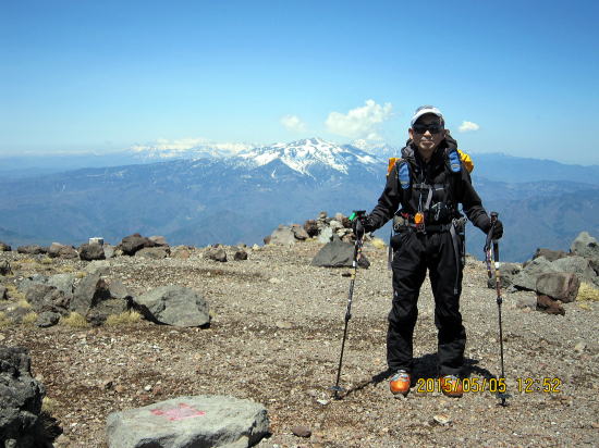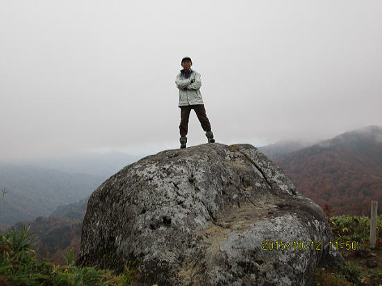 | 前ピークから南方面を望む。 | 母御岩での記念撮影。セルフタイマーの使い方も慣れてきました。 |
