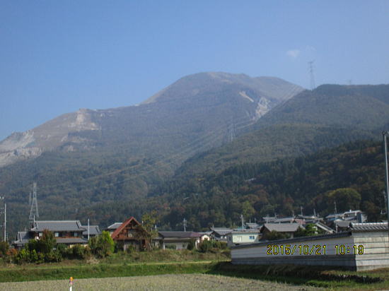 | 御座峰への谷部は下部は未知なので下から山スキーでトライする価値は大いにありそう。見えるのは揖斐川町春日三束、かなりガスがとれました。 | 帰路、国見峠から名峰伊吹山をのぞむ。 |