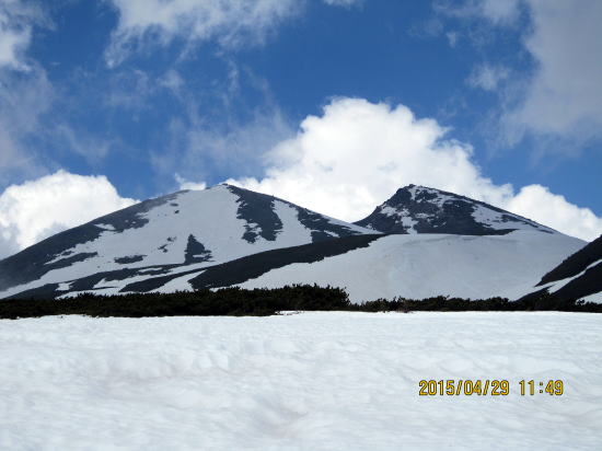 | 早朝3:30岐阜発、3時間の長い運転。しかしこの景色が我を元気づける。大日岳が見える。剣ヶ峰は隠れている。 | 剣ヶ峰も大日岳右手に見える。 |