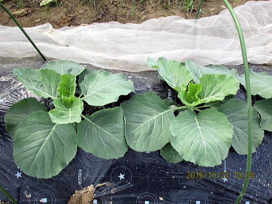 | 10/23 順調に育っています。 | 10/23虫にやられていません。もう少しネットをかけておきます。 |