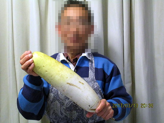 | 寒中のみずみずしい野菜。 | 12月からの土中での仮眠を終え、掘り出された大根。保存適期は 冬至の頃~節分。春分の日に掘り出したものは4本中1本悪くなっていました。 |