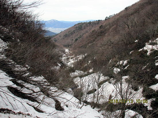 | 左岸ルンゼ少し下ったところから大野平野が見えます。 | 自然の家付近からみる銀杏峯(中央右より)・・・素晴らしい |