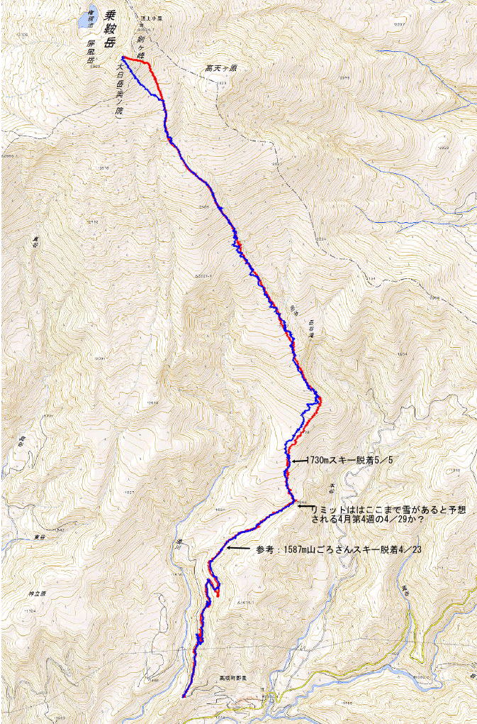 | 尾根取り付き(ゲレンデトップ) | 10:20 | 14:35 | 2140 |