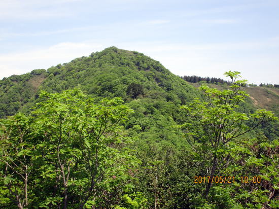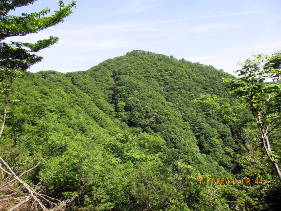 | 新緑のトンネルは体によさそうです。 | 頂上に見えますが、前衛峰です。 |