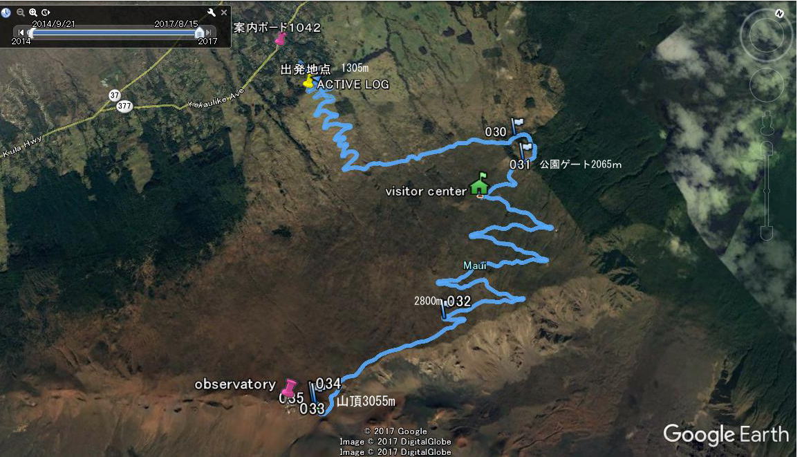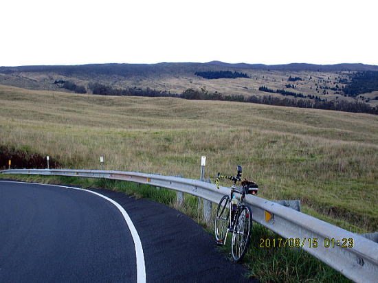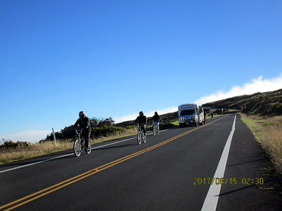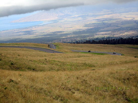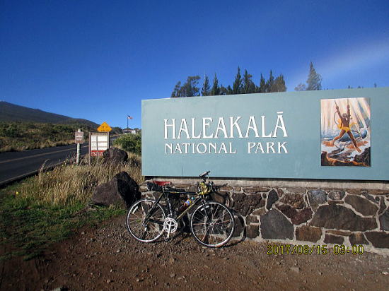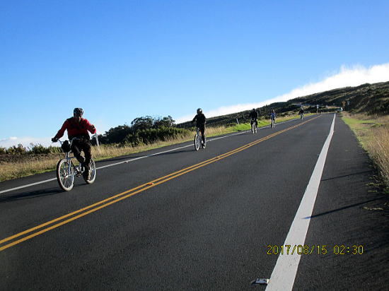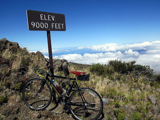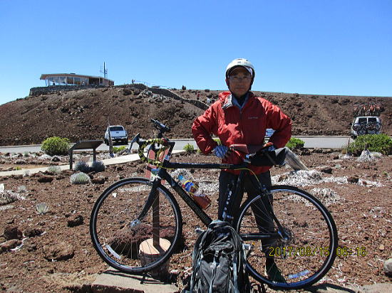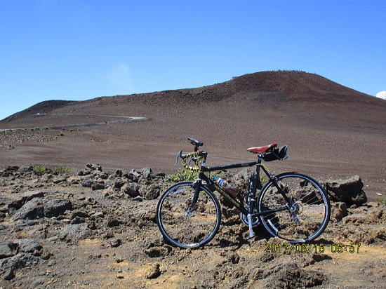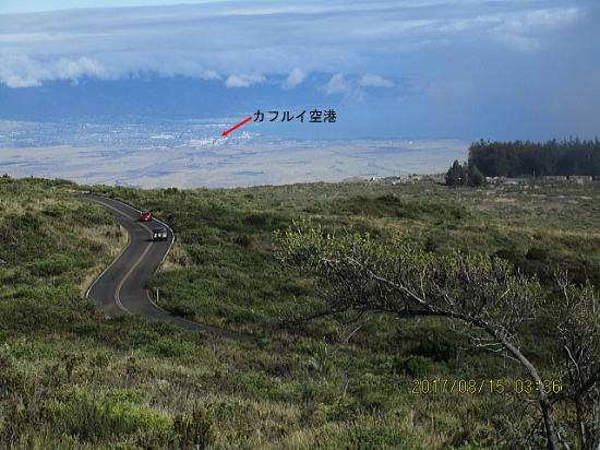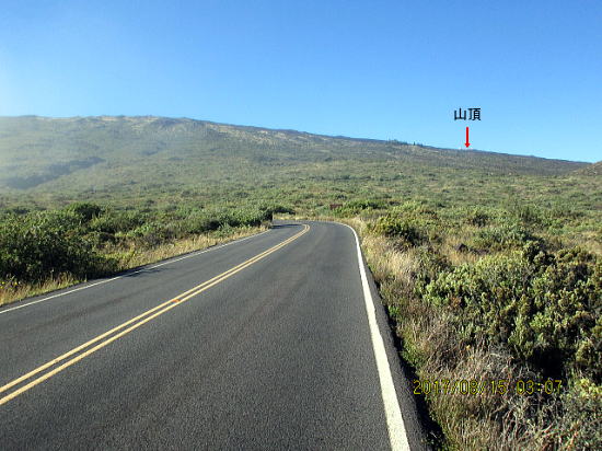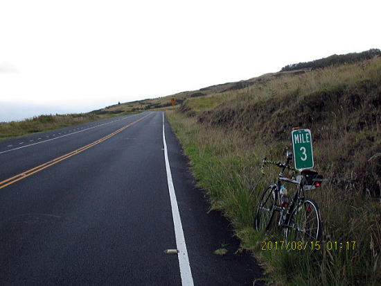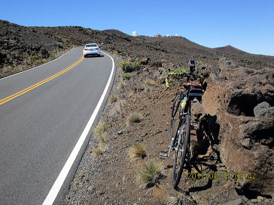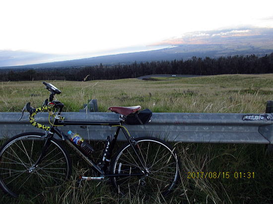 | 8月14日 ハレアカラ・バイクアップ。起床4時、車で1時間走り、KULAの町へ、昨日チェックした駐車サイト1305m地点に5時半に着くがまだ暗い。明るくなる6時を待って出発する。 | |
