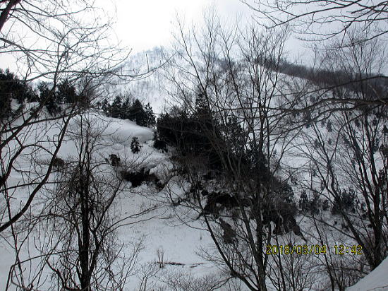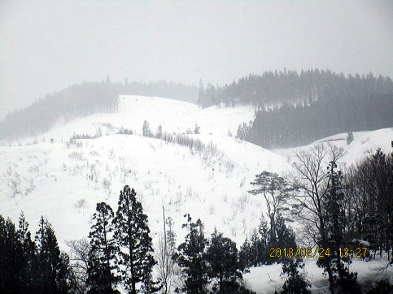 スキー場でないのに、これほどの切り開きは、植林の伐採後か、一度尋ねてみたい。 山麓でこの天候では、納得です。 |