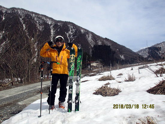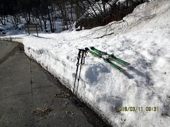 | 駐車場50m手前まで滑ってこれて満足です。 | 積雪の量がほぼ事前のイメージ通りでうれしくなりました。こんな年はこれから先ないでしょう。 |