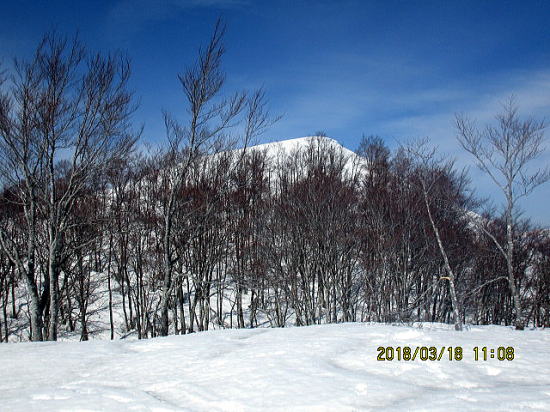 | 旧スキー場を始点にするツアーは初めてで新鮮です。 | クトーを効かして快適登高です。こんな晴れは4週ぶりかな? |