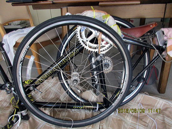 | 出発日の午前中40度近い猛暑の中、少少やっかいな自転車の輪行作業に入ります。1年に1回の出番で自転車屋さんに笑われています? | 中部国際空港から8時間でマウイ着、その後予約しておいたアラモレンタカーをかりて40分でコンドに到着。夜はコンド前カフェ・オーレレストランでケイジャン・シュリンプをいただきました。約27ドルですがこれはシェアした一人分。これで十分、残しました。後でわかったのが5ドル追加でサラダとパンをもってきてくれます。 |