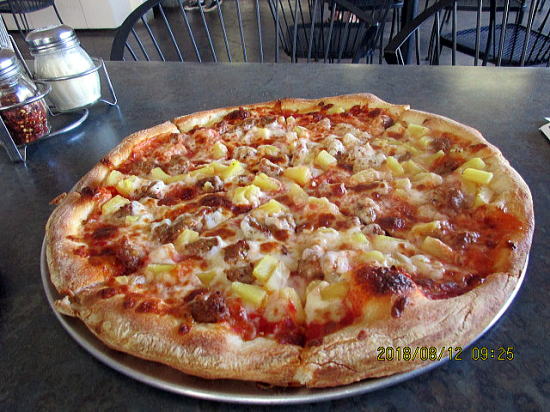 | この日もマケナ・ランデングで泳ぎ昼食は、地元紙にガイドされているシャカピザ。 ニューヨークスタイル(うすいパリパリで手でちりばめたピザ)にパイナップルとサラミをトッピングしました。19ドルくらいでしたが、私は1/8で腹一杯でした。 |