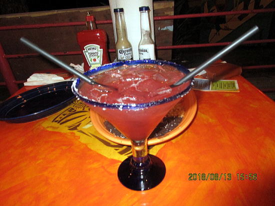 | メキシカンレストランの入り口、→が我らがテーブルでした。入り口に近いので他の4人テーブルを依頼したが断られた。 | |