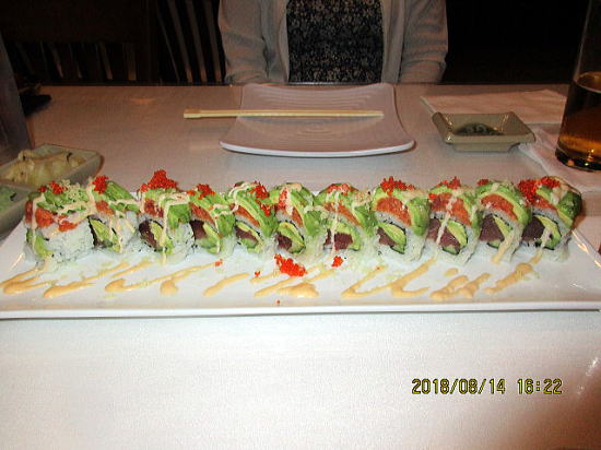 | ハワイアン・ダブルデッカーロール(2層に飾られたロール寿司)24.95ドル。 | ちなみに地元の有名レストランでで週末は予約を入れないと長蛇の列に巻き込まれます。 |