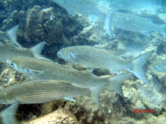 | 魚②、腰高の深さです。 | 魚③、浅瀬の方が餌が多いのかたくさんの魚がいます。 |
