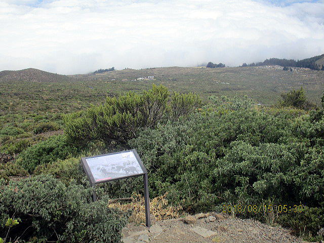 | 標高2134mのヘッドクゥオータービジターセンター。売店などあり本庁で山頂が支社という感じです。 | レレイビウィ展望台2694m、出発から4時間たちました。雲海が広がります。 |