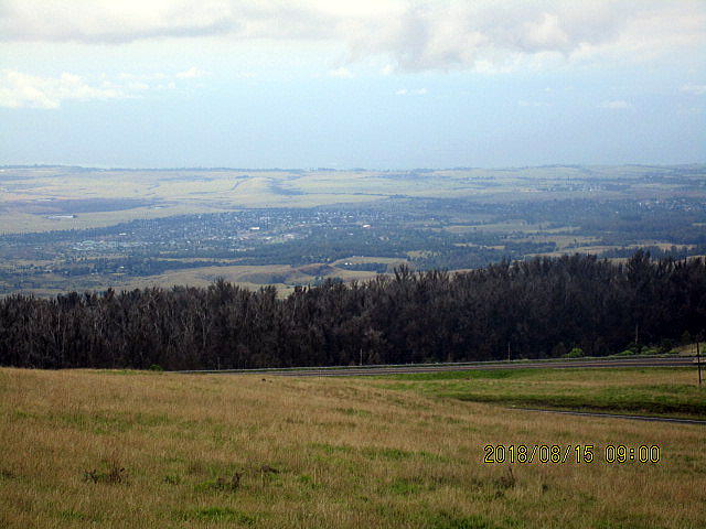 | 6時間の登りが1時間で下ってしまします。カフルイ湾がや飛行場付近が見えます。 | この町はプカラニです。 |