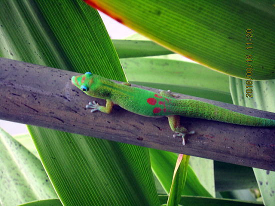 | 食器洗浄機は幅も奥行きも高さも我が家の2倍近くあります。まな板がはいります。 | アゼカショッピングセンターでは、この足はヤモリ、美しい、丸々した体型です。 |