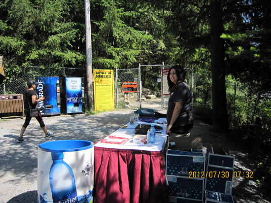 | 2年ぶり、週末のスタート地点にはウィスラーボトル水が販売されている。 | 登りは単調です。 |