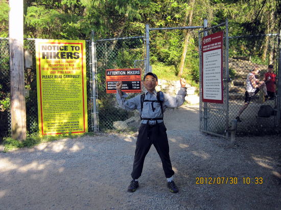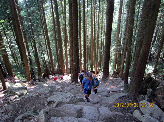 | 下りはBCMC(バンクーバーマウンテインクラブ)の下山ルートです。 | 登り1時間5分、下り1時間です。 |
