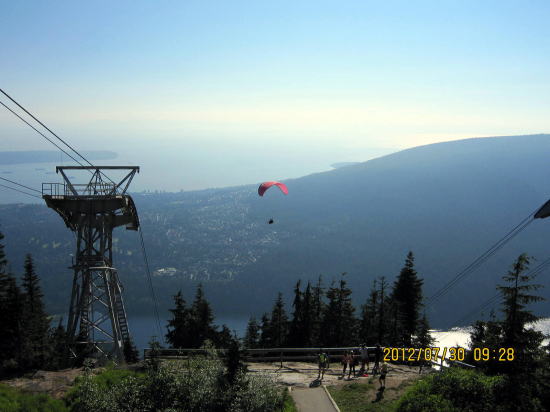 | 7/29 14:20 対岸のノースバンクーバーのグラウスMtに向かいます。 | 何とここ、ウォーターフロントから無料シャトルバスがでている。これは実はゴンドラを使わないと利用できないとか。私も一度利用したので良しとしよう。 |