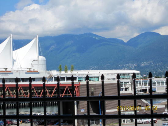 | 帰りのスカイトレインから望むシーモアMt、中央左コブが山頂。 | いよいよバンクーバーともお別れです。 |