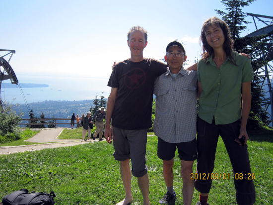 | 8月4日:バンクーバー在住の伊深さん招待のとゴルフコンペの表彰BBQパーティーに参加。ガーデンパーティーはおいしかったね。翌日はMt.シーモアハイク。 | 右上にバラード海峡、その左にシーモアMtの軌跡です。今回はバーナビーにホームステイしました。 |