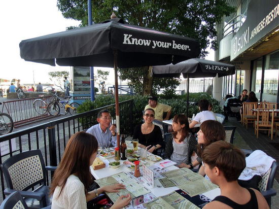 | トレイル終点でみんなは一服します。 | レストラン前から見下ろすウェストバンクーバーとイングリッシュベイ。 |