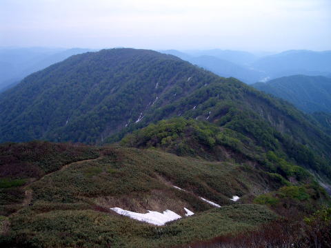 前山から見下ろす能郷谷は気持ちがよいものです。人間の足はつくづく丈夫だと思います。というのも初登頂は20歳、2回目は温見峠から25歳の時です。年齢は経ましたが、山は以前のままでした。
