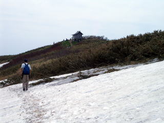 山頂稜線です。残雪があります。特にこの社からは360度パノラマです。